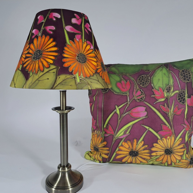 A medium hand painted silk lampshade from my "Hedgerow" collection.