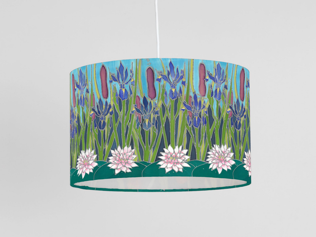 Hand made shades from fabric designed and printed by Karen in her County Donegal studio.