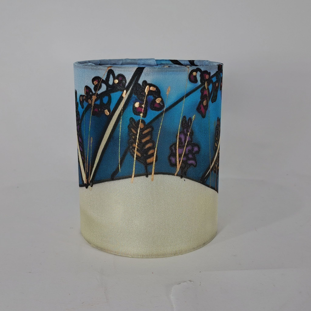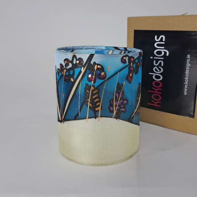 Hand painted on pure silk and made into a cute tealight holder which comes in a presentation box and with a battery led tealight included.